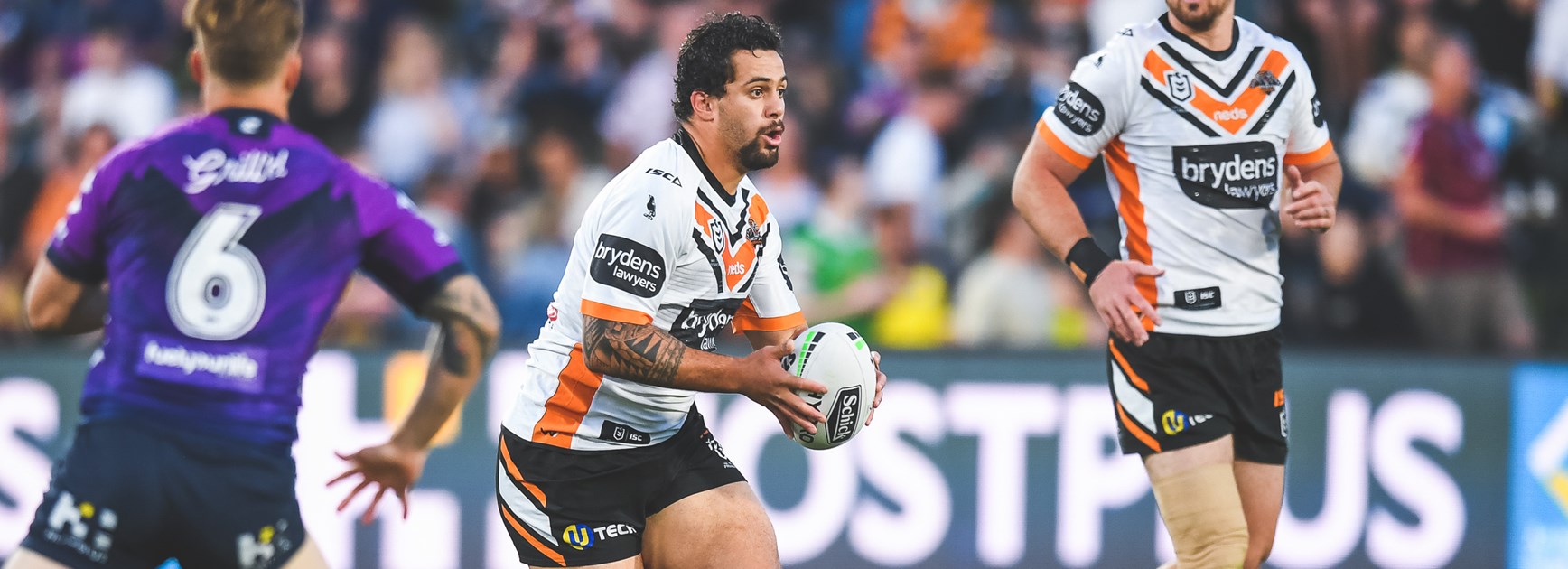 With close to 70% percent possession for the entirety of the first half, the Storm opened the scoring after four minutes and didn't look back — running in seven first half tries and causing havoc for Wests Tigers on both sides of the field.