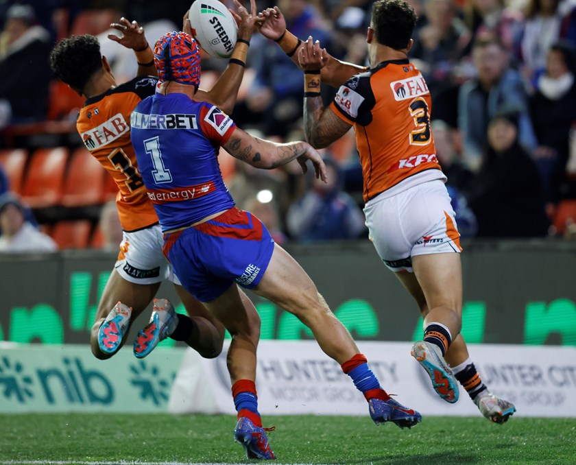 Wests Tigers enjoyed an inspired start to the game as they marched seventy metres downfield on the first set and placed an attacking kick into the Newcastle sky.