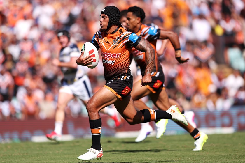 35th minute: Pearce-Paul gets his second try of the afternoon, picking up a grubber off Jarome Luai. This pushes the Tigers ahead 22-2.