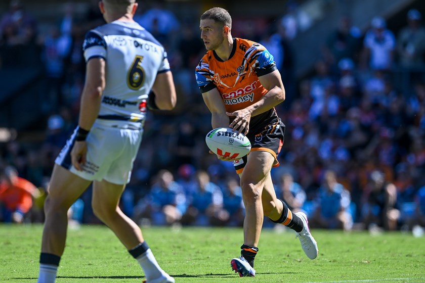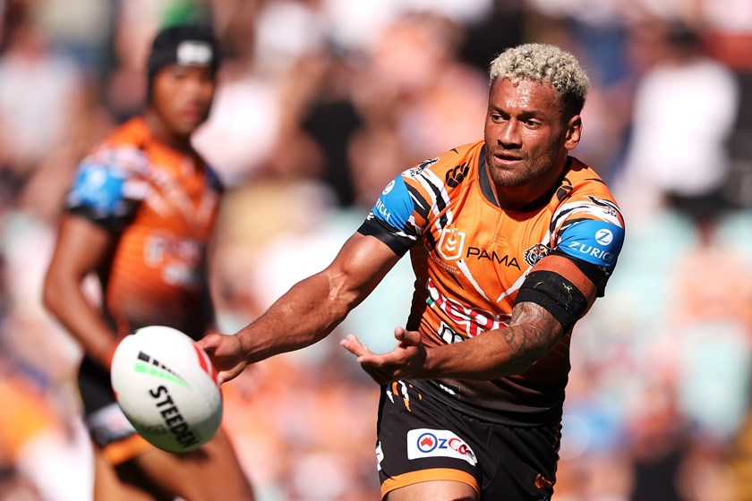 39th minute: Off a 20-metre scrum, Luai gets the ball to Bula, who finds Luke Laulilii on the wing to score. Doueihi converts and sends the Tigers into halftime leading 28-2.