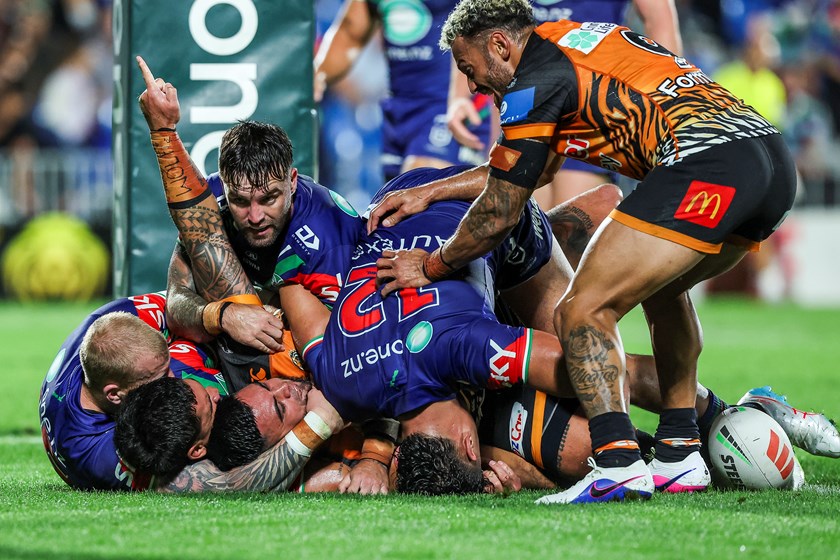 60th minute: Doueihi makes another impactful run, breaking away deep in the Tigers half, linking with Jahream Bula, who finishes for his first try of the season to extend the lead to 22-10.
