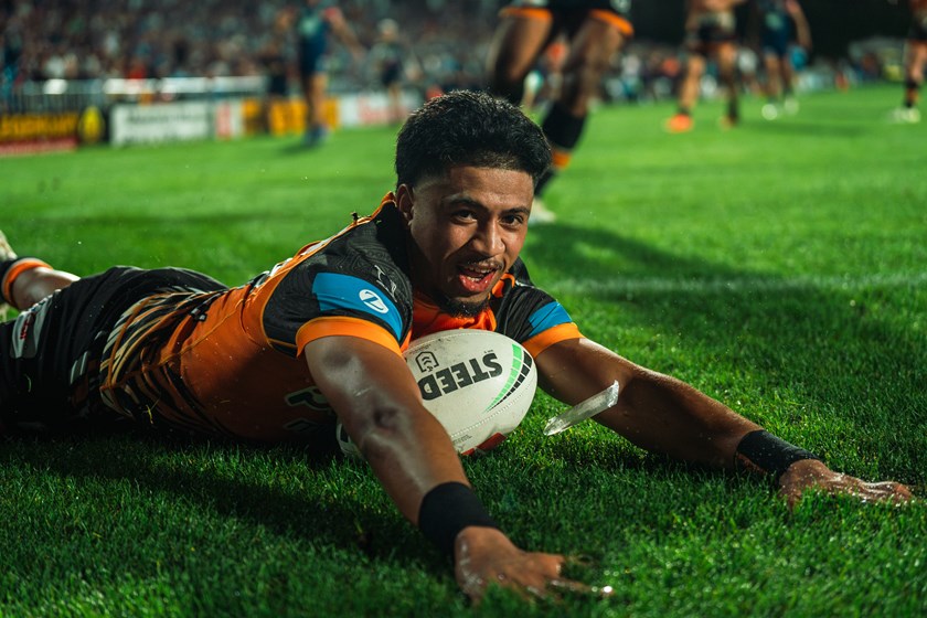 The newly minted Wests Tiger #305 has scored two tries in as many matches since taking the field at NRL level, with an aerial effort to add to his highlight reel when scoring in Round 5 against the Eels.